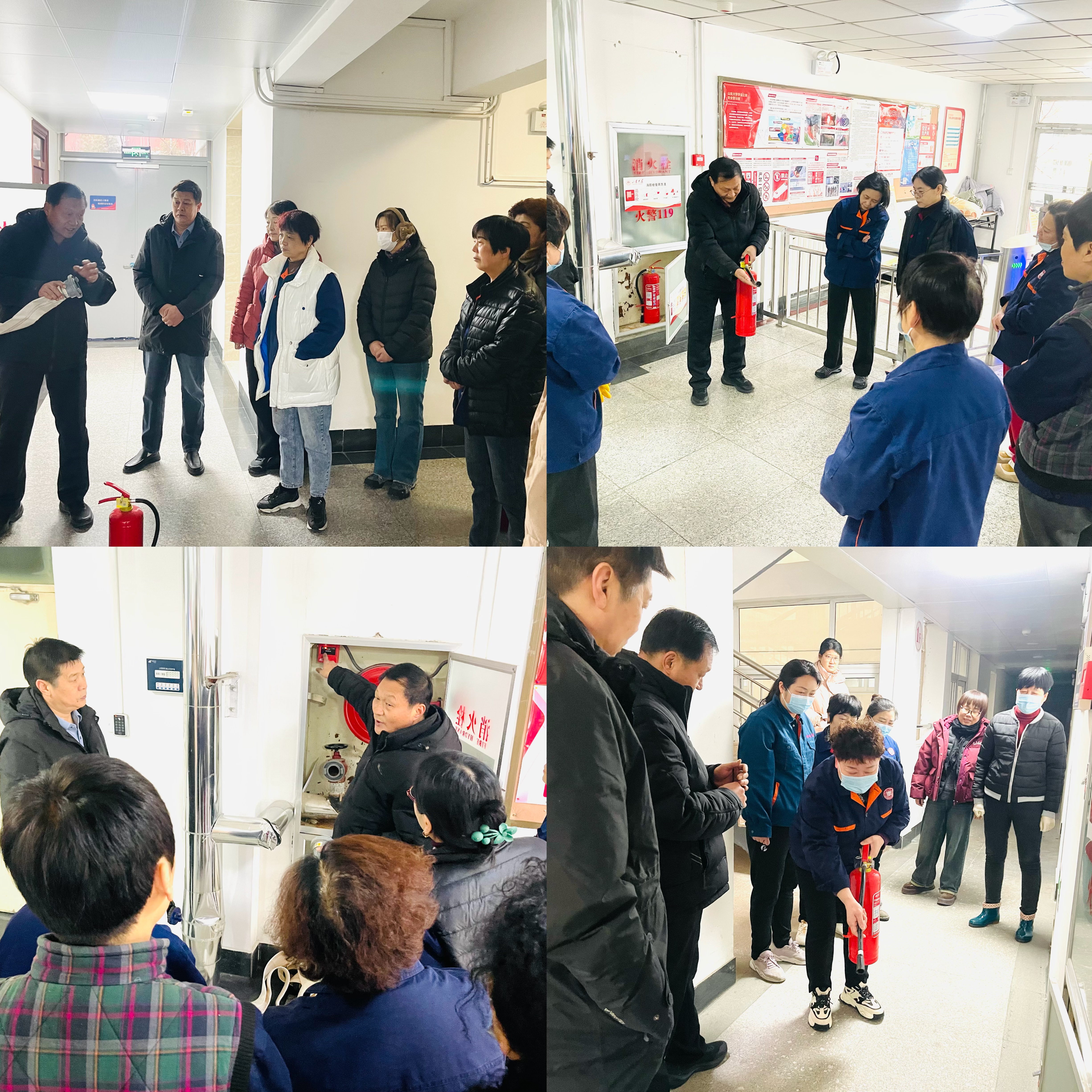 学生公寓是校园安全管理的核心区域,寒假期间人员流动变化大、安全防护任务重,一线工作人员作为安全防护的“第一道岗”,其应急处置能力直接关系到公寓安全稳定。此次培训摒弃理论说教为主的模式,聚焦“实操落地、学以致用”,由校区管理部安全负责人带队,邀请消防专业人员结合学生公寓楼栋布局特点,逐楼开展沉浸式教学。